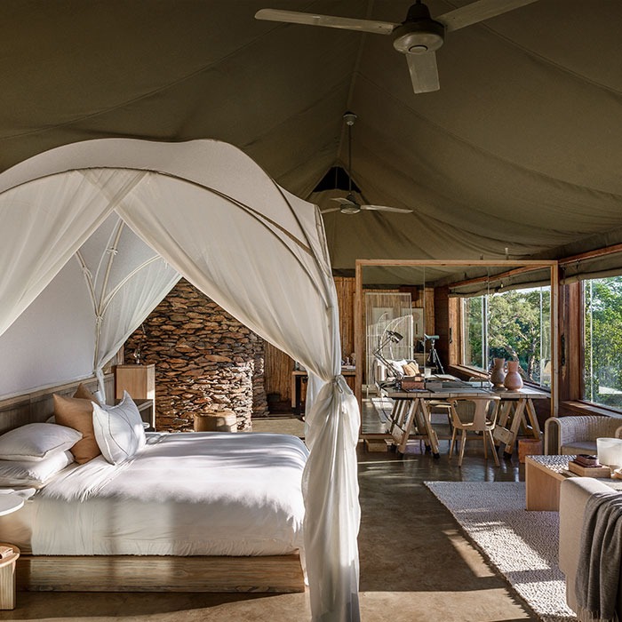Inspired by the romance of yesteryear, Somalisa Camp in Hwange offers exquisite features, including a copper slipper-style bathtub and endless vistas across the sweeping plains.